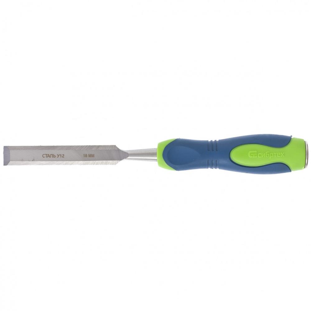 Долото-стамеска Сибртех 24483 с двухкомпонентной рукояткой — ручной инструмент с шириной режущей части 18 мм для столярных и плотницких работ с массивом натурального дерева. Под ударом киянки или небольшого молотка долото-стамеска легко врезается в древесину любых пород, что позволяет получать аккуратные прямоугольные пазы, снимать фаски, зачищать гнезда и т.д.