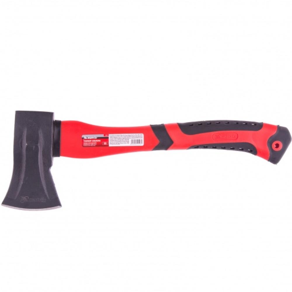 Топорище выполнено из фибергласа и оснащено резиновыми накладками, поэтому не скользит в руках, устойчиво к негативным воздействиям окружающей среды и гасит колебания от ударов.