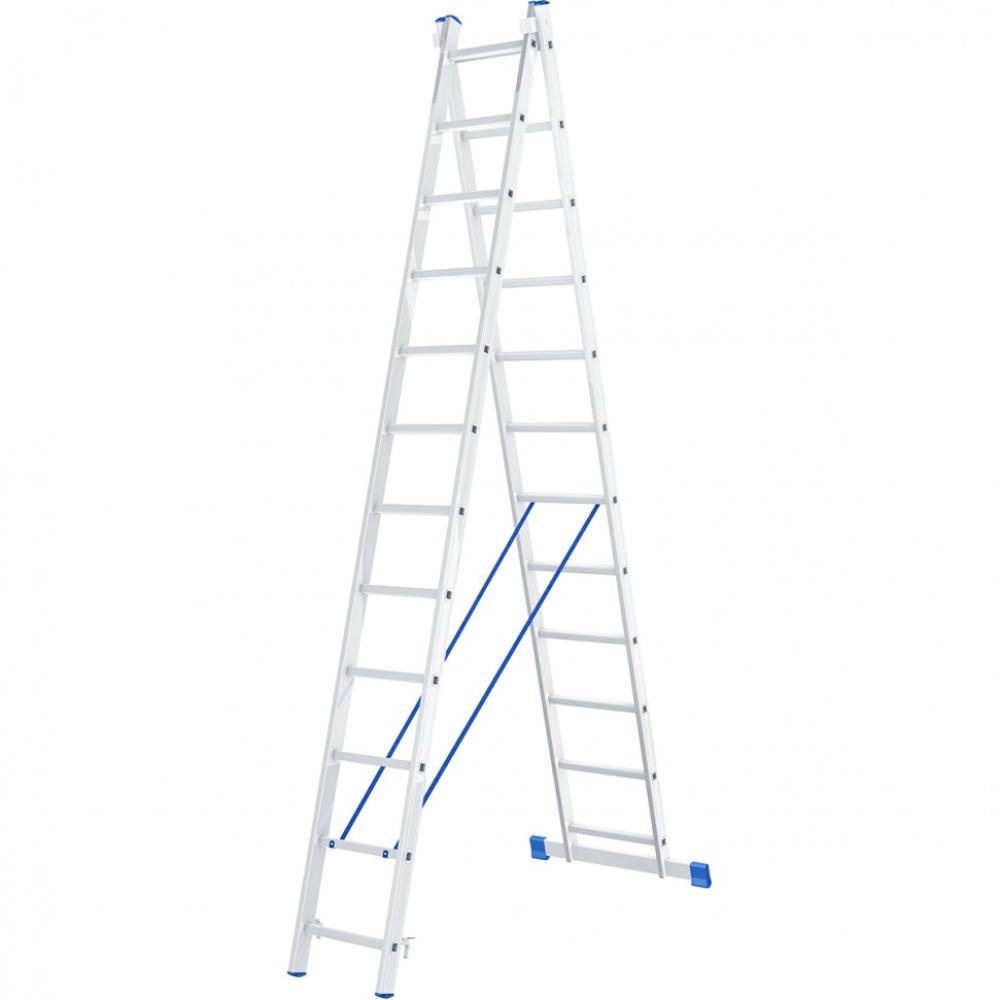Алюминиевая двухсекционная лестница Сибртех 97912 состоит из 2-х секций по 12 ступеней каждой. Легкая и прочая применение, она используется в качестве двух стремянок, встречается для бытового и полупрофессионального.