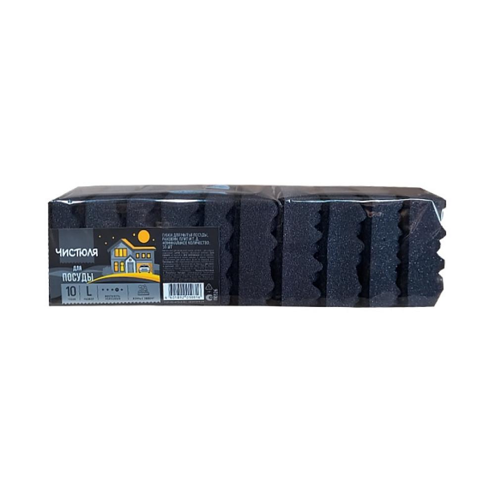 Губки для посуды Чистюля L "Пенный эффект", черные, 10 шт.
