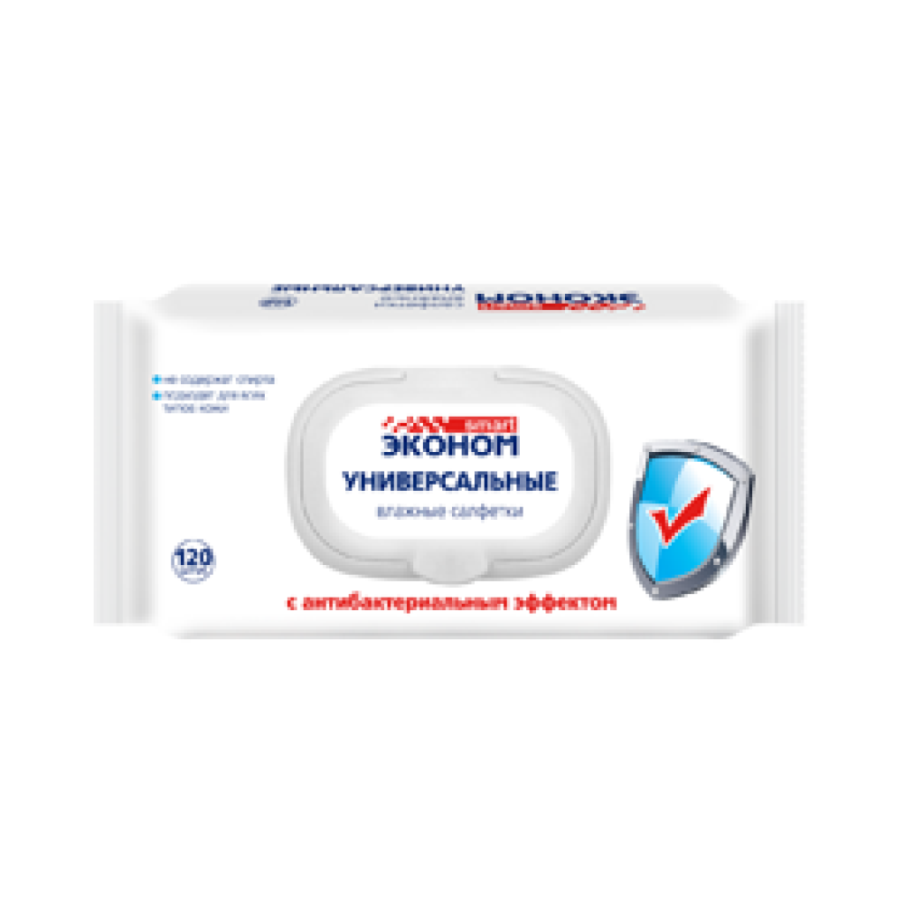 Салфетки влажные 120 шт, антибактериальные,SMART ЭКОНОМ