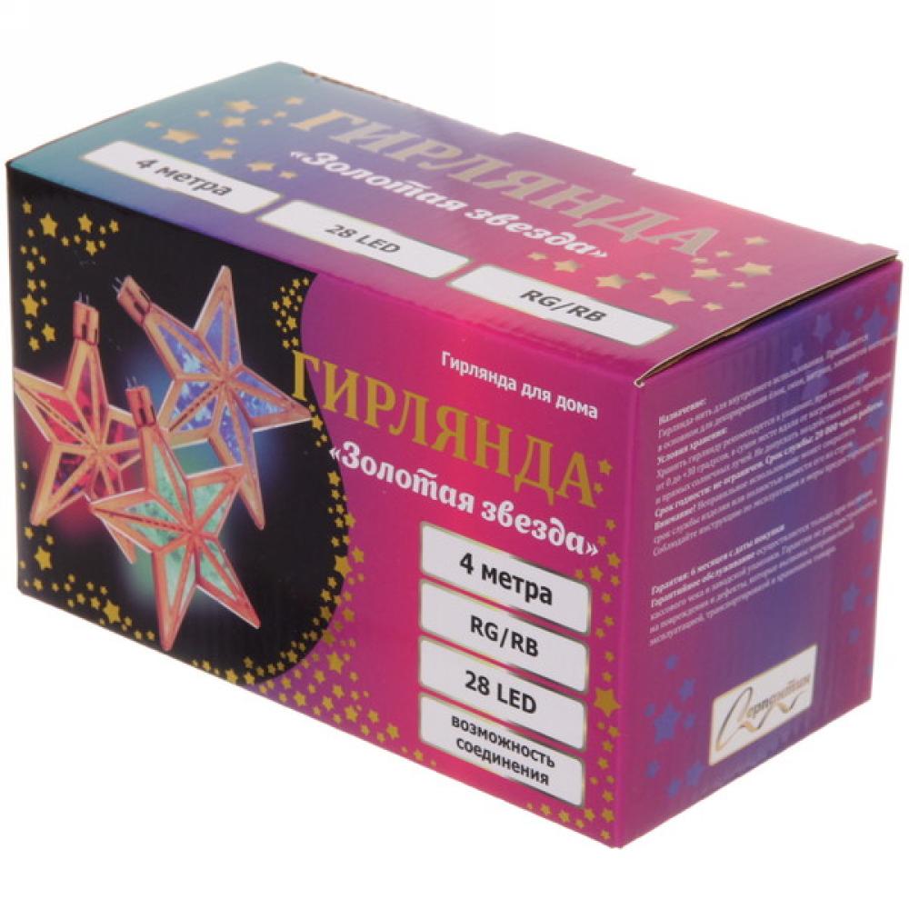 Эл. гирлянда Золотая звезда, 4м, 28ламп, IP20,Мультицвет 196-096