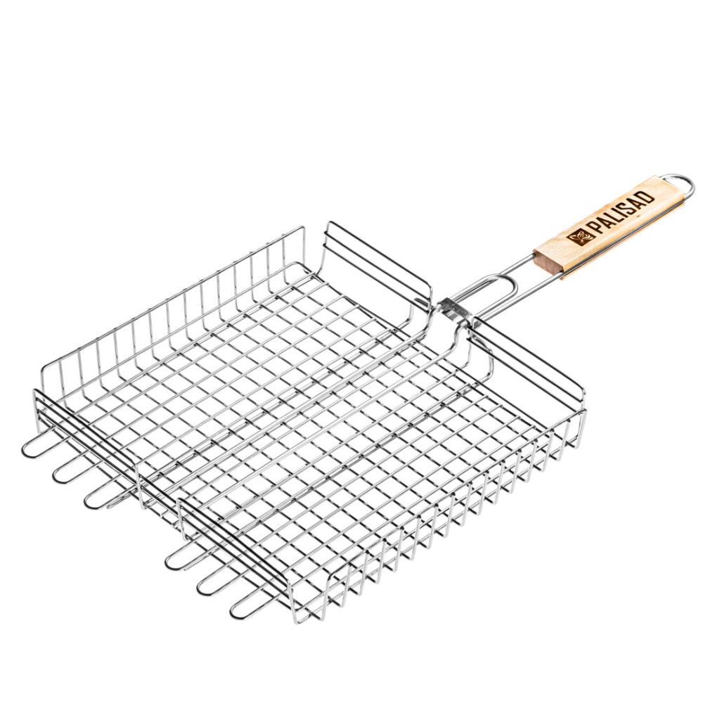 Объемная решетка-гриль Palisad Camping 69647 размером 340 х 340 х 60 мм, из нержавеющей стали, предназначена для приготовления блюд из мяса, рыбы и овощей.