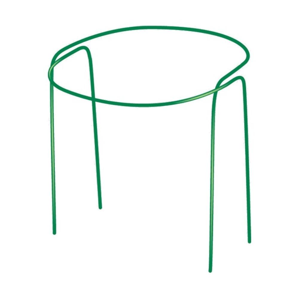 Кустодержатель 64417 выполнен в форме круга диаметром 0,25 м с 4 опорами высотой 0,6 м, диаметр проволоки составляет 5 мм. Изделие обеспечивает правильный рост растений, используется в качестве опоры для кустов, в том числе с хрупкими стеблями. Позволяет предотвратить деформацию веток под весом листьев, ягод и плодов. За счет высоты 0,6 м кустодержатель оптимально подходит для низкорослых растений.