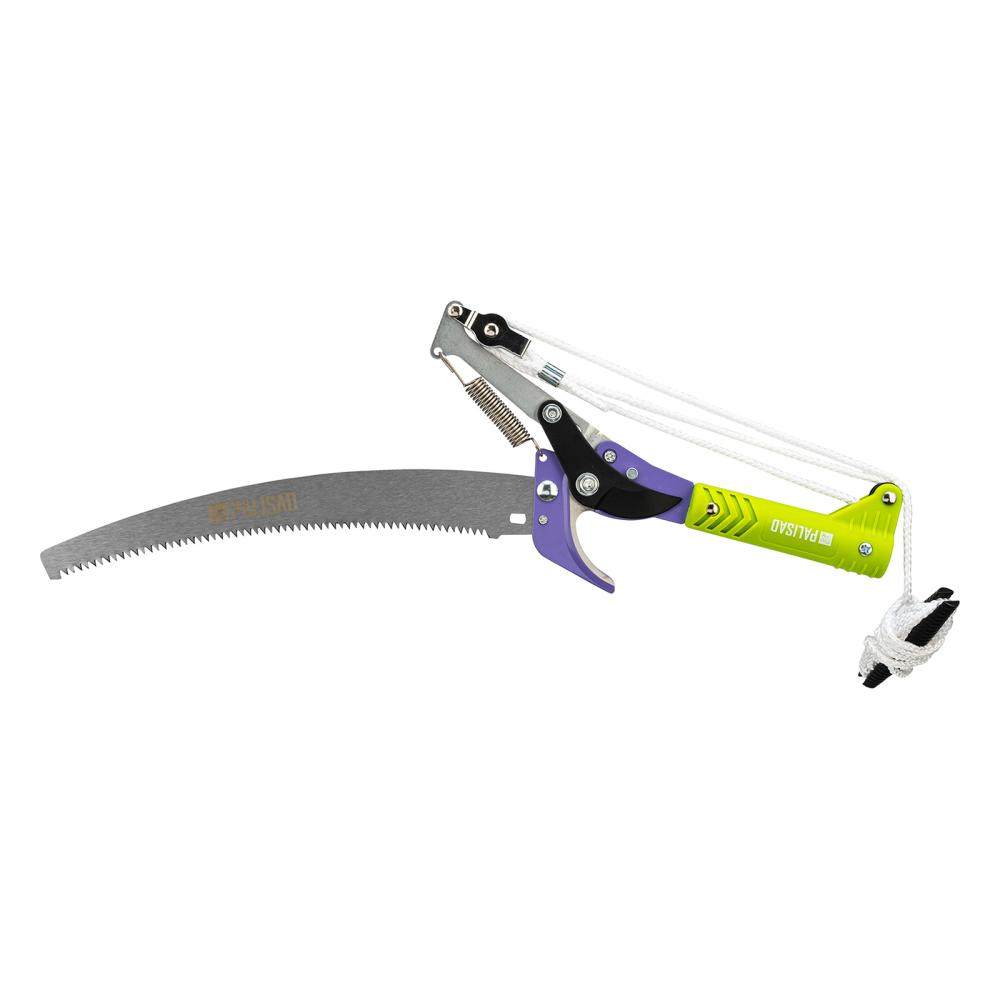 Штанговый сучкорез с пилой Palisad 60581, прямой рез, с пластиковой тулейкой диаметром 25 мм, способен срезать живые ветки толщиной до 20 мм. Выполнение этой задачи упрощает тефлоновое покрытие лезвия, которое уменьшает трение о древесину. Более толстые ветви диаметром до 60 мм можно спилить пилой, которая предусмотрена конструкцией инструмента. Сучкорез с пилой необходимо установить на штангу или черенок (приобретается отдельно), чтобы обрезать ветки на высоких кронах. Инструмент пригодится владельцам загородных участков.