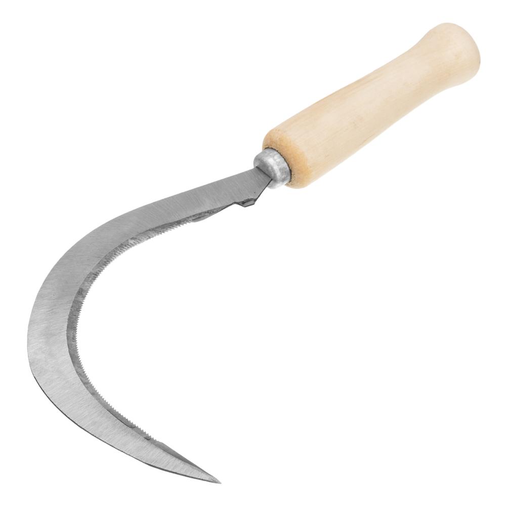 Серп изготовлен методом горячей ковки, это позволяет добиться высокой твердости и упругости стали.