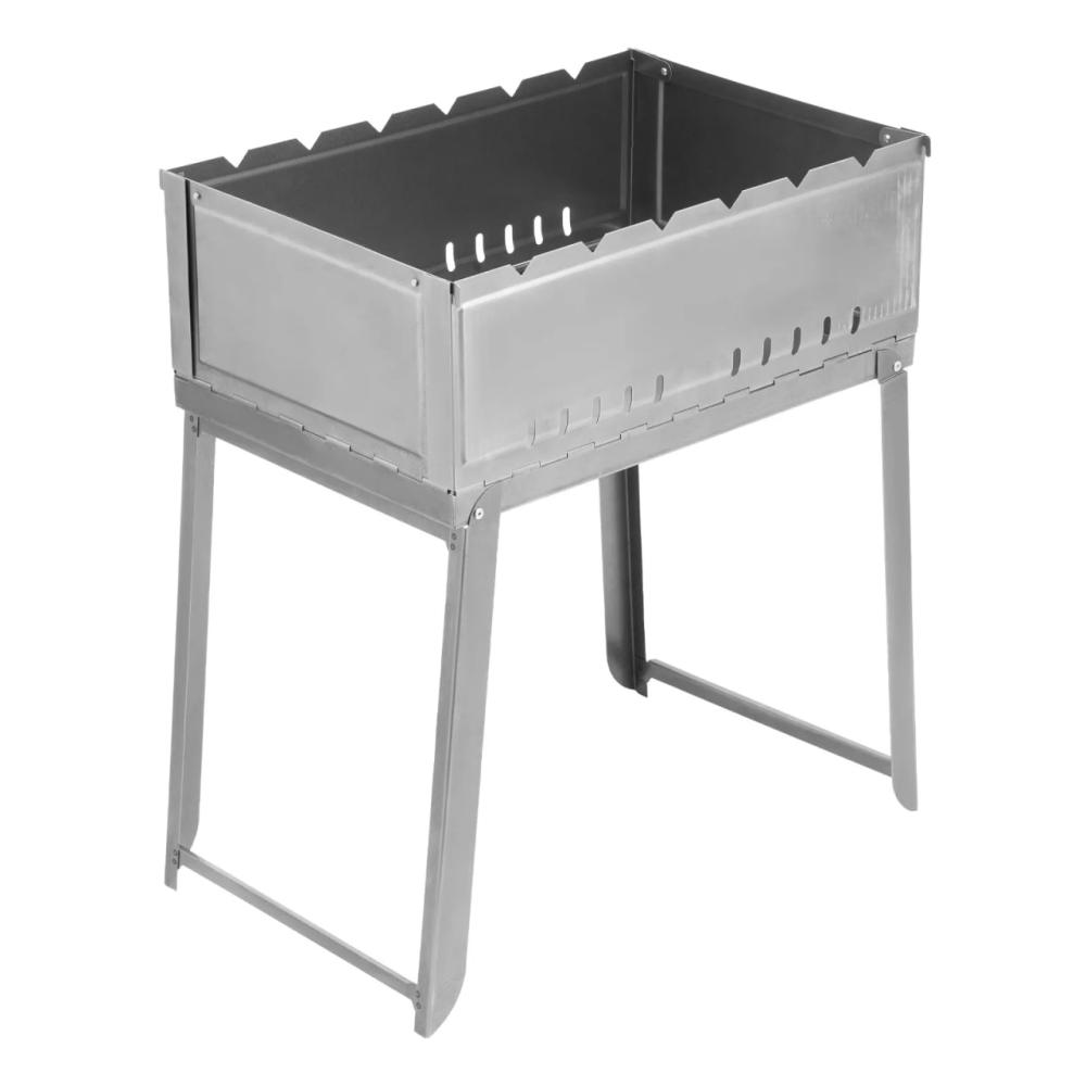 Долгий срок службы — мангал изготовлен из жаропрочной углеродистой стали увеличенной толщины 1 мм, ребра жесткости повышают прочность конструкции.