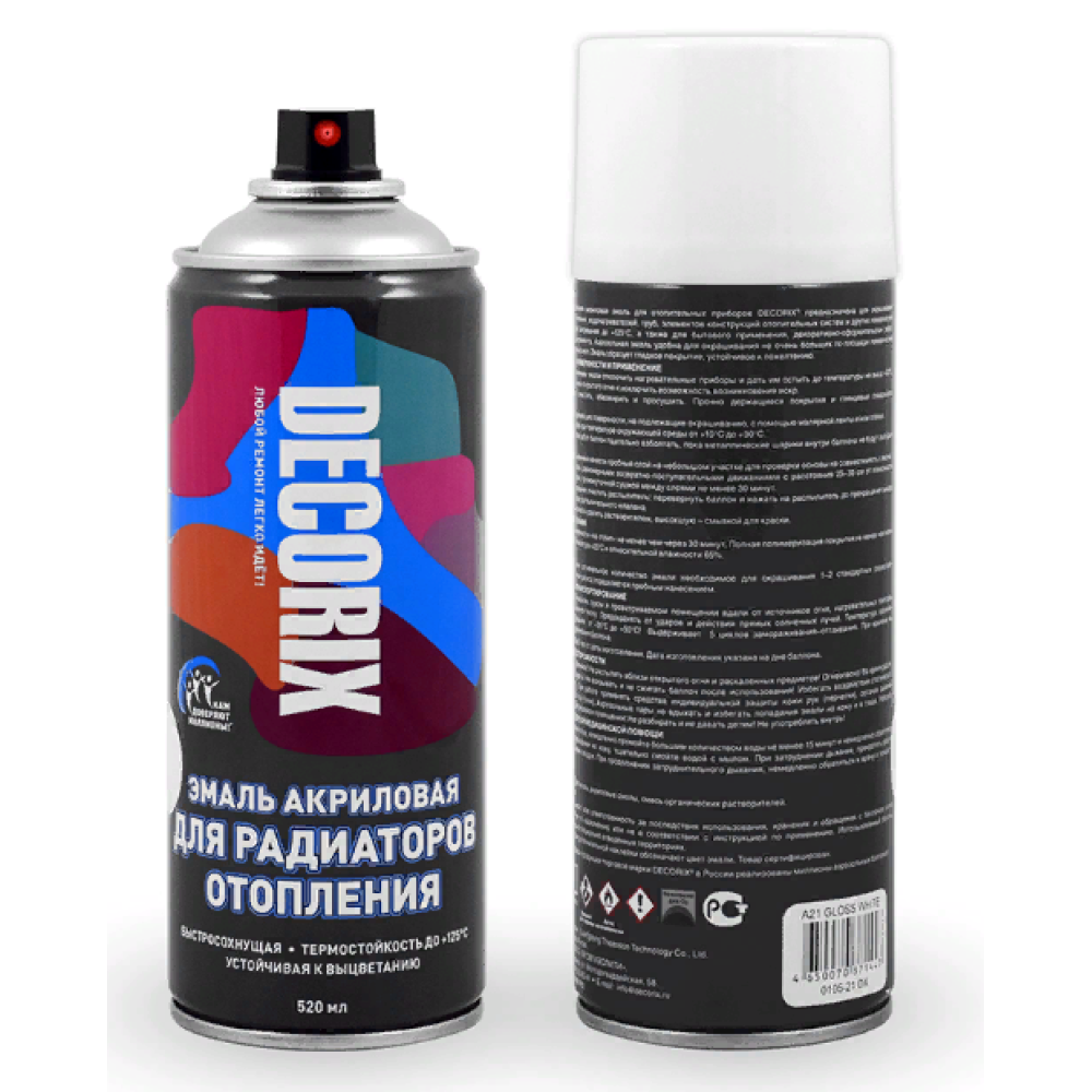 Эмаль аэроз. DECORIX акрил. д/радиаторов белая матовая 520мл А24