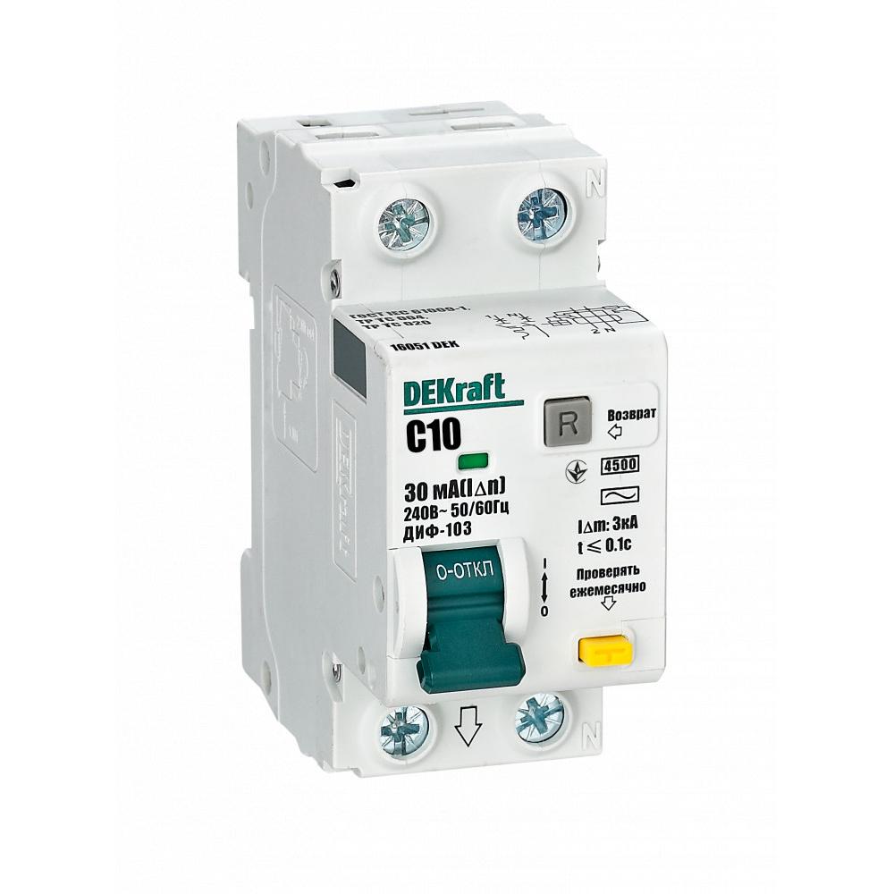 Автоматическими выключателями дифференциального тока серии ДИФ-103 Dekraft; 1N+P;