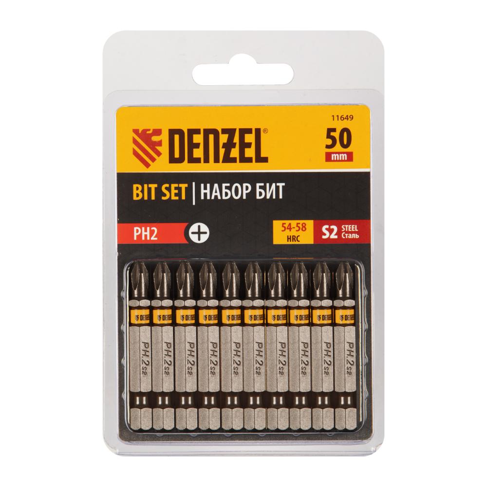 Бита магнитная PH2х50, сталь S2, шестигранный профиль, Е 6,3, 10шт/уп (ПОШТУЧНО), Denzel