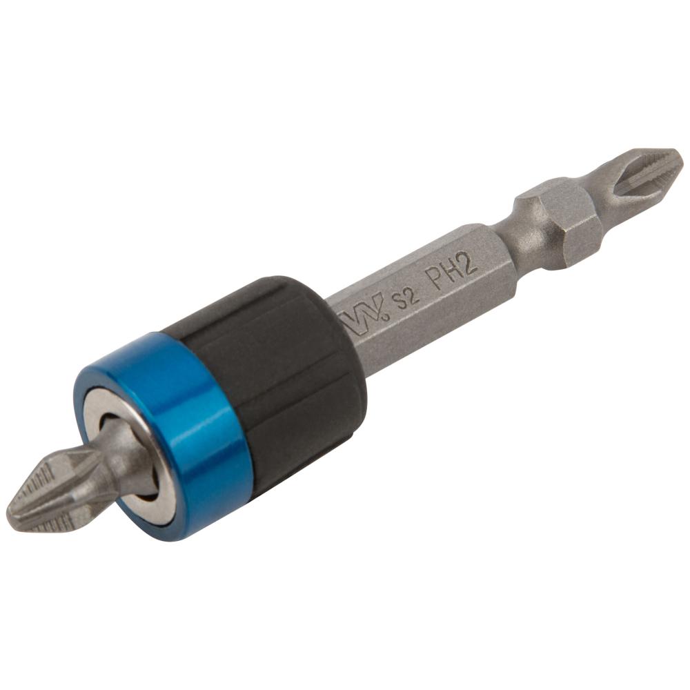 WP. Профи. Облегчает закручивание шурупа. С магнитным фиксатором для быстрой смены бит + 1 двухсторонняя бита длиной 65 мм (PH2) с насечками, сталь S2. Упаковка: блистер.
