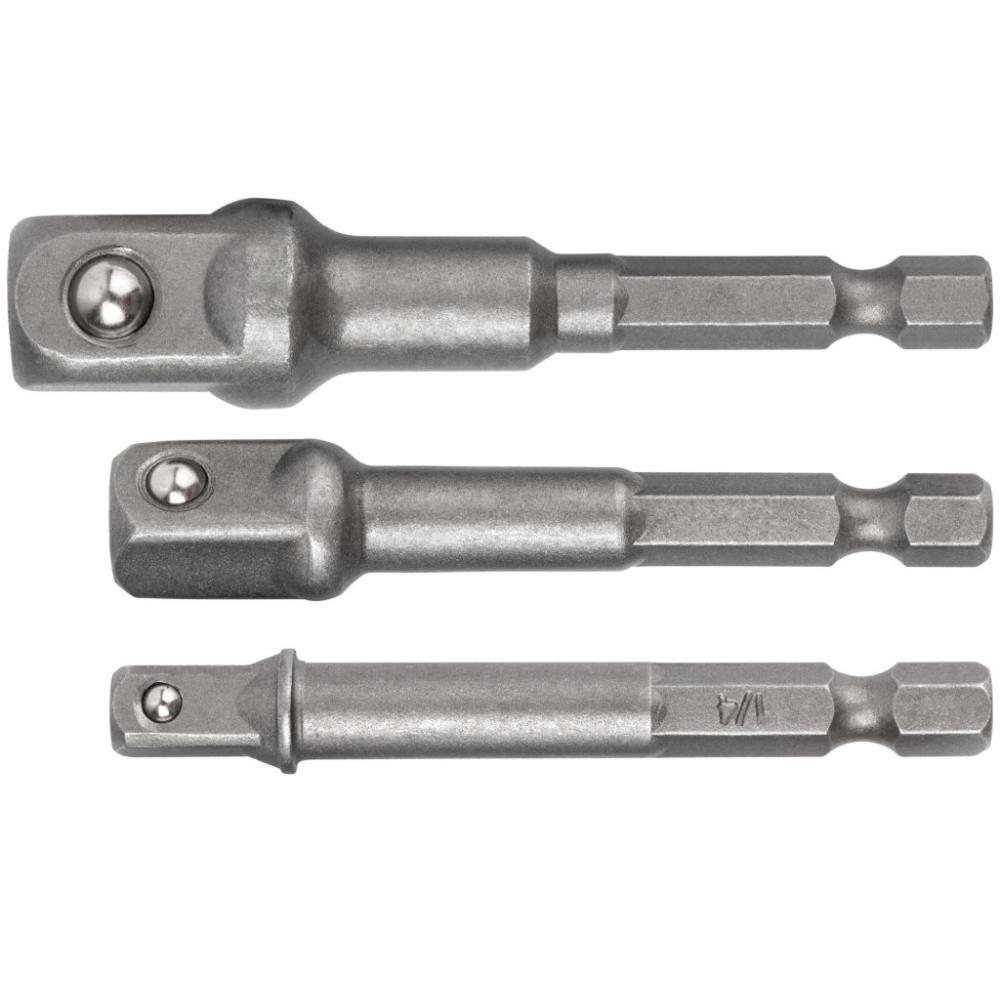 Набор адаптеров под головки с хвостовиками под биты FIT IT предназначен для установки торцевых головок в отвертки для бит или патроны шуруповертов. Адаптеры изготовлены из качественной легированной стали, что обеспечивает их прочность и долговечность. 3 адаптера в комплекте (1/4"; 3/8"; 1/2") обеспечивают широкий спектр применения.