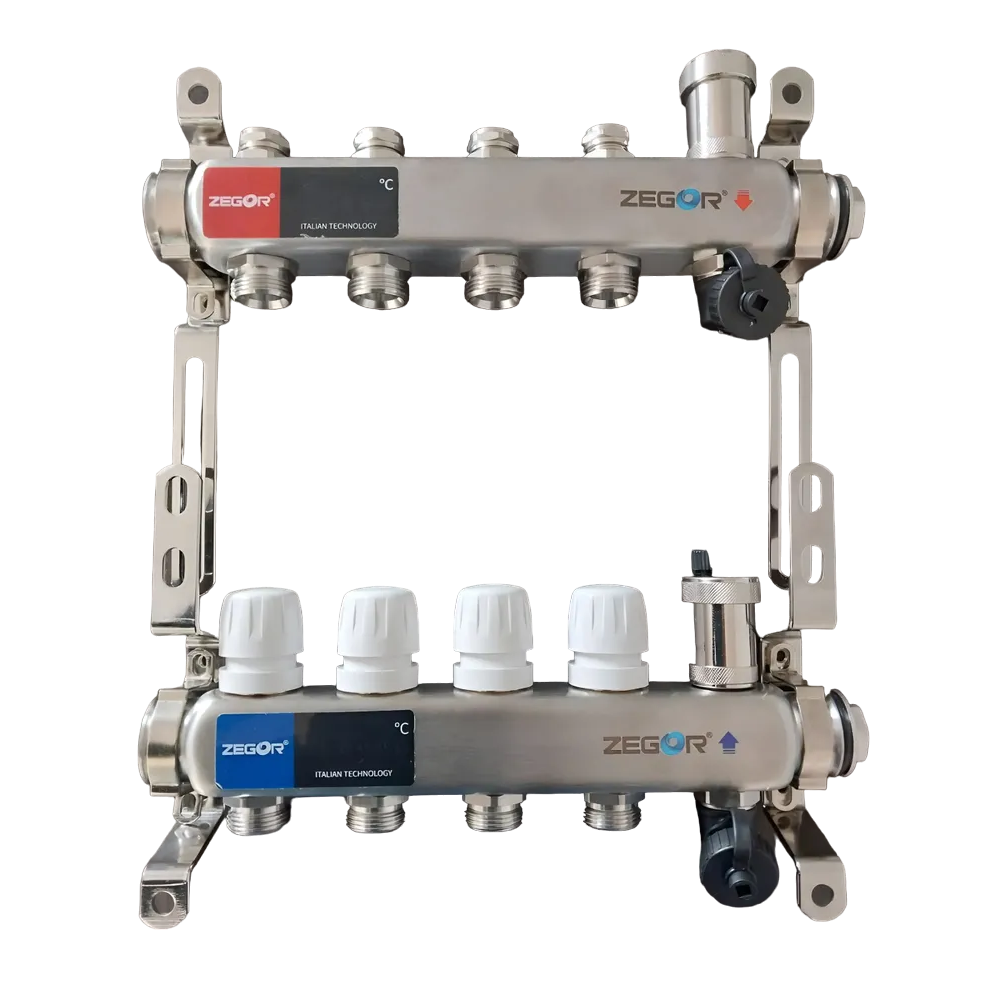 Коллекторная группа 4 выхода х1.0"х3/4" В-В-ЕК с расходомерами нерж ZEGOR