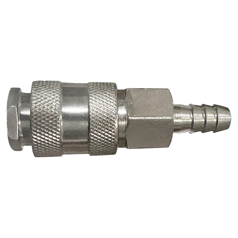Адаптер быстросъемный. С запорным клапаном. Внутреннее быстросъемное соединение - адаптер-соединитель "елочка". Предназначен для соединения различных частей пневмосистем. Совместим с адаптерами европейского типа и американского. Материал: инструментальная сталь с никелевым антикоррозийным покрытием. Упаковка: блистер.