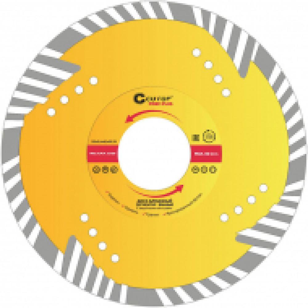Для резки армированного бетона, керамической плитки, гранита, кирпича, камня. Защитные сектора диска обеспечивают защиту режущего слоя от бокового износа. Изготовлен методом горячего прессования, что обеспечивает большую твердость и более длительный срок службы диска в сравнении с методом холодного прессования. Диски характеризуются повышенной концентрацией алмазов, улучшенным качеством алмазных зерен и оптимально подобранной металлической связкой. Эти преимущества обеспечивают высокую производительность и увеличенный срок службы. Материал: инструментальная сталь, режущая кромка содержит порошок из технических алмазов. Упаковка: двойной блистер.