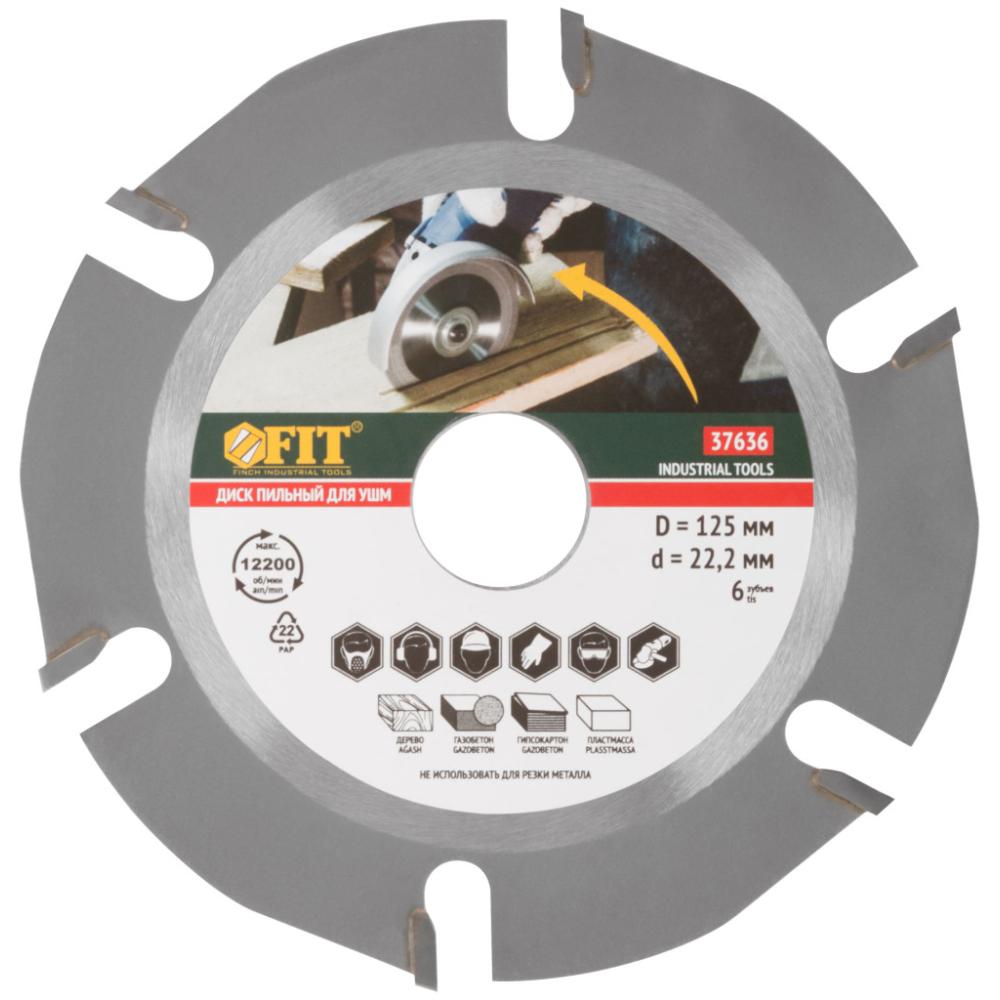 Диск пильный по дереву, посадочный диаметр 22,2 мм, 6 зубьев с карбидными вставками, 125 мм ФИТ