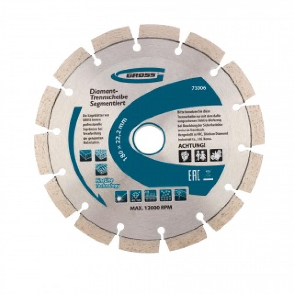 Алмазный диск Gross 73006 диаметром 180 х 22,2 мм, с лазерной приваркой сегментов, предназначен для сухой резки бетона, в том числе свежего, кирпича, песчаника и гранита. Посадочный диаметр 22,2 мм позволяет использовать диск в качестве оснастки для УШМ. Сегментное строение снижает риск деформации и обеспечивает быстрое сухое резание без необходимости водяного охлаждения. Благодаря оптимально подобранной связке диск выдерживает высокие нагрузки при выполнении большого объема работ. Подходит как для интенсивного бытового, так и для профессионального применения.