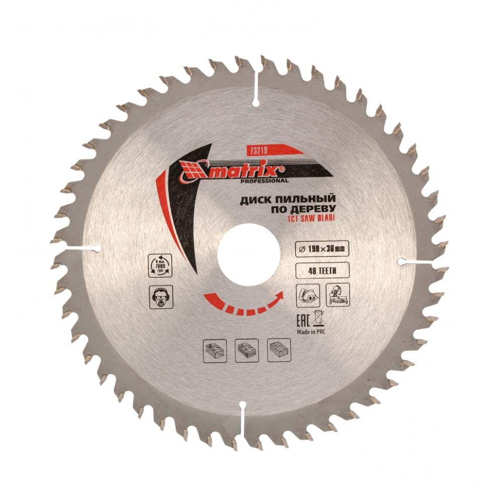 Пильный диск по дереву Matrix ф190 х 30 мм 73219 с 48 зубьями применяется в качестве оснастки на циркулярных и торцовочных пилах с соответствующим внутренним и внешним диаметром. Он используется преимущественно для поперечного реза материалов из мягкой и твердой древесины, ДСП, ДВП, фанеры, столярных плит.