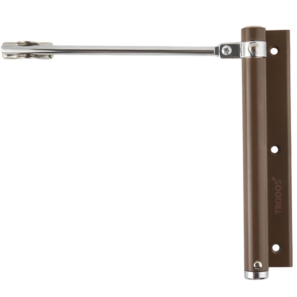 Пружинный регулируемый доводчик,односкоростной. Вес дверного полотна до 35 кг, Ширина дверного полотна 750 мм, Тип установки: универсальный, для левых и правых дверей. Рычаг двигается по закрепленной на двери пластмассовой направляющей.
