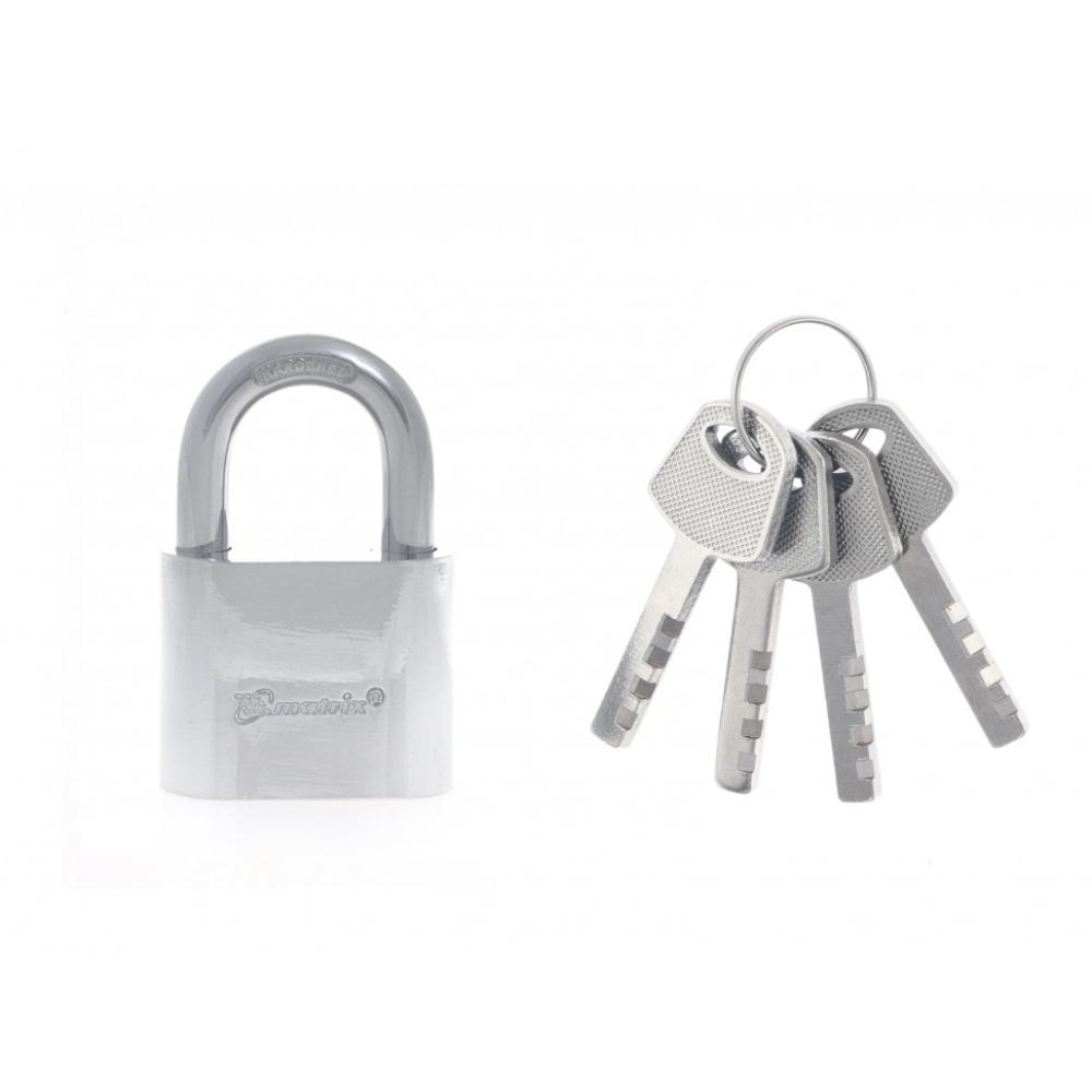 Навесной замок Matrix 91800 с хромированным покрытием, 40 мм, используется для запирания дверей в помещениях, обеспечивая защиту собственности. Его можно повесить на дверь склада, гаража, подвала и т.д. Замок навесного типа легко устанавливается на двери с помощью специальных проушин.