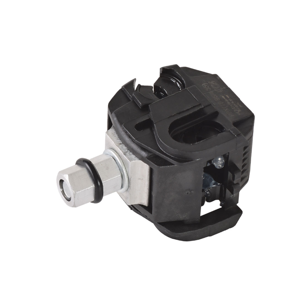 Прокалывающий зажим для сип P2X-95 (16-95;2.5-35) предназначен для соединения фазных и нулевых жил самонесущих изолированных проводов сечением 16-95 мм2 и проводов сечением 2,5-35 мм2. Зажим ответвительный прокалывающий предназначен для соединения и ответвления абонентских алюминиевых и медных проводников и проводов освещения. Прокалывающий зажим имеет срывнаю металлическую головку, регулирующую силу затяжки болта, момент затяжки 10 Н/м.. Изоляция прокалывающего зажима даёт возможность монтажа под напряжением. Корпус зажима изготовлен из армированного композиционного диэлектрического пластика, устойчивого к ультрафиолетовым излучениям и деталей, не подверженных коррозии. Контактная часть прокола герметизирована специальным атмосферо-ультрафиолетостойким уплотнителем, изготовленным из эластомера. Прокалывающие зажимы рассчитаны на монтаж при температуре до −20° C и эксплуатацию при температуре до −60° C. Изоляция испытана при 6кВ. Сечение магистрали от 16 до 95 мм2 Сечение проводника ответвления от 2,5 до 35 м
