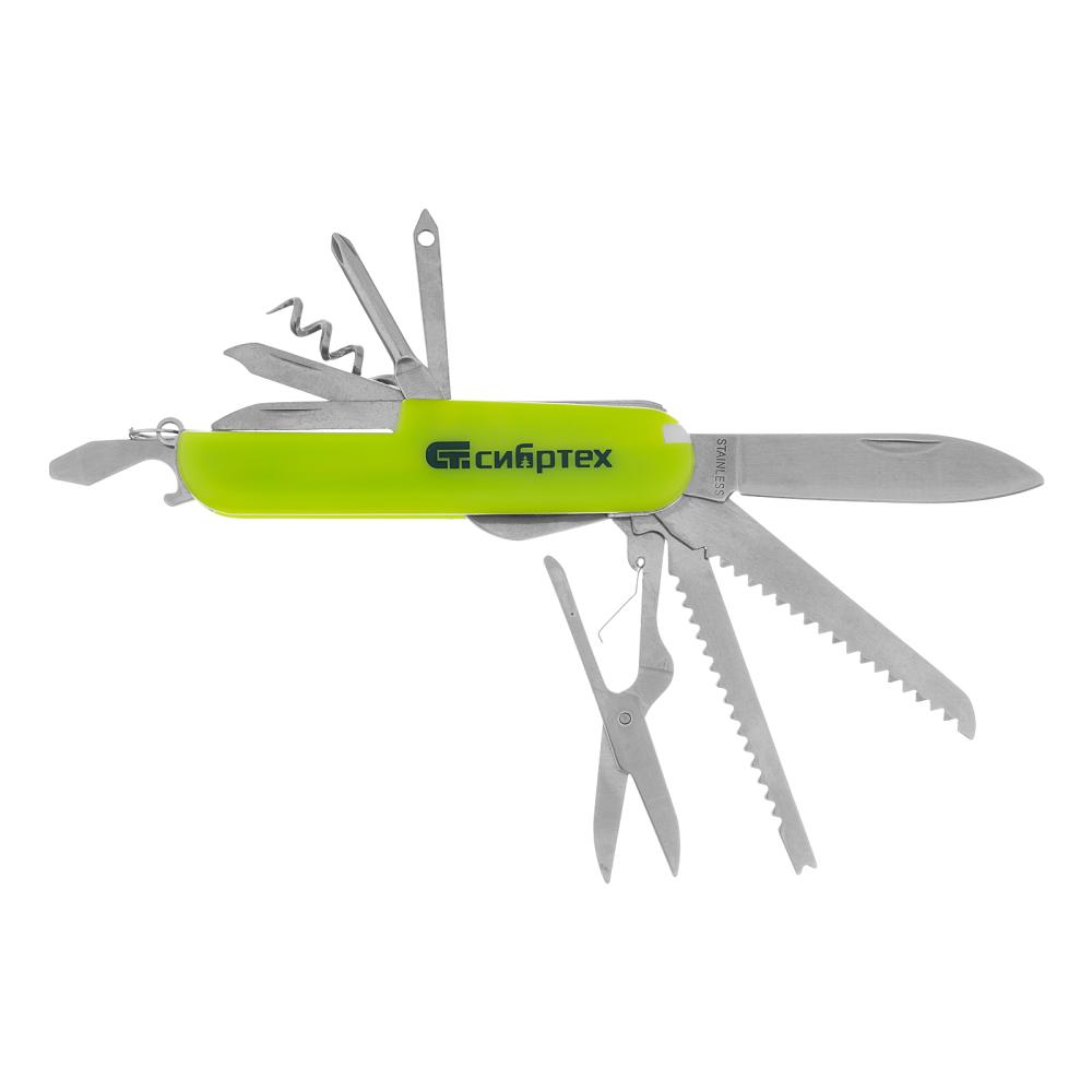 Многофункциональный нож Сибртех 17626 компактного размера, длиной 90 мм, способен выполнять 15 функций и заменяет собой целый набор инструментов. Будет полезен на рыбалке, т.к. включает приспособления для чистки рыбы и удаления крючков. Пригодится также на пикнике, в походе, поездке и на охоте.