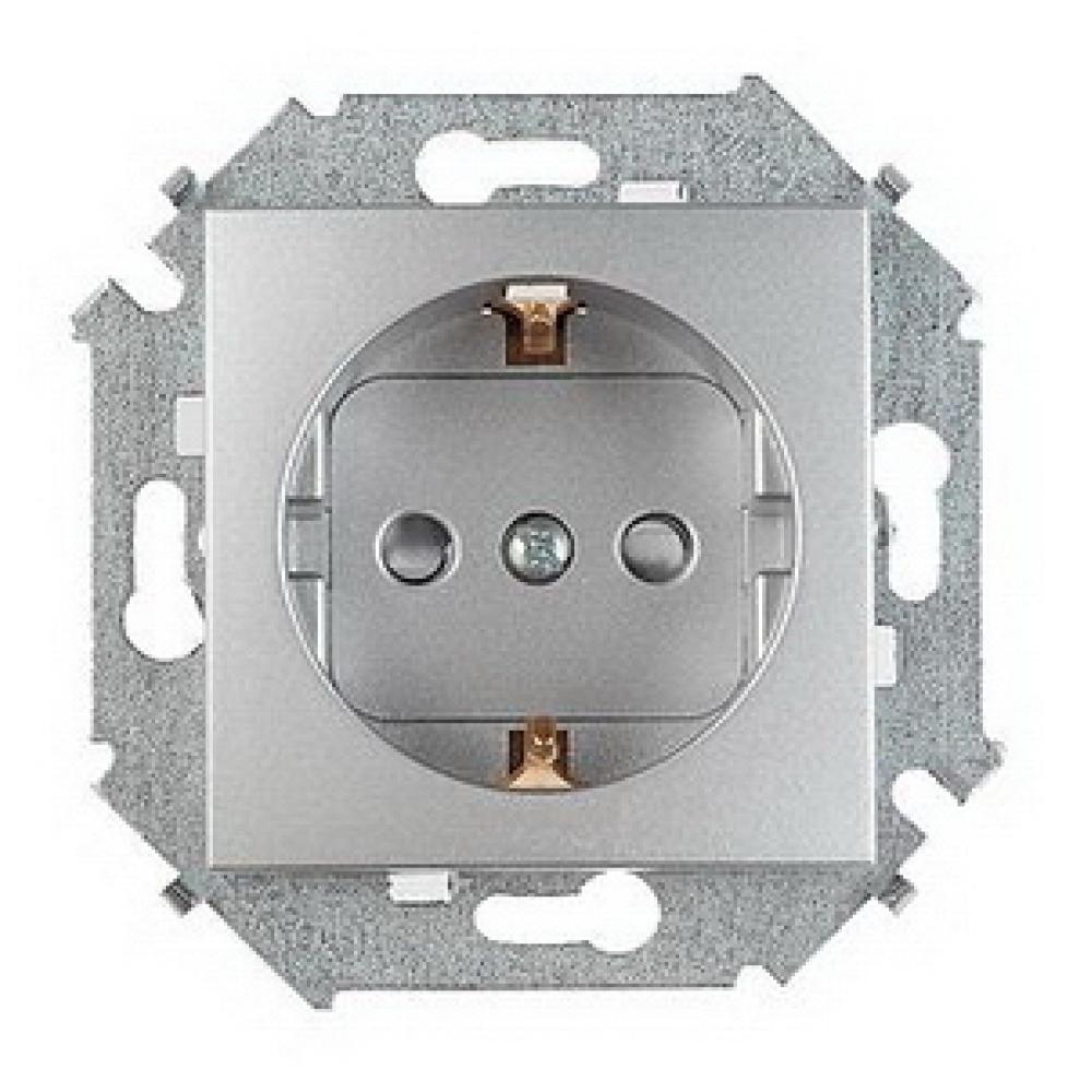 - Розетка "Simon"1СП с/з алюминий под рамку