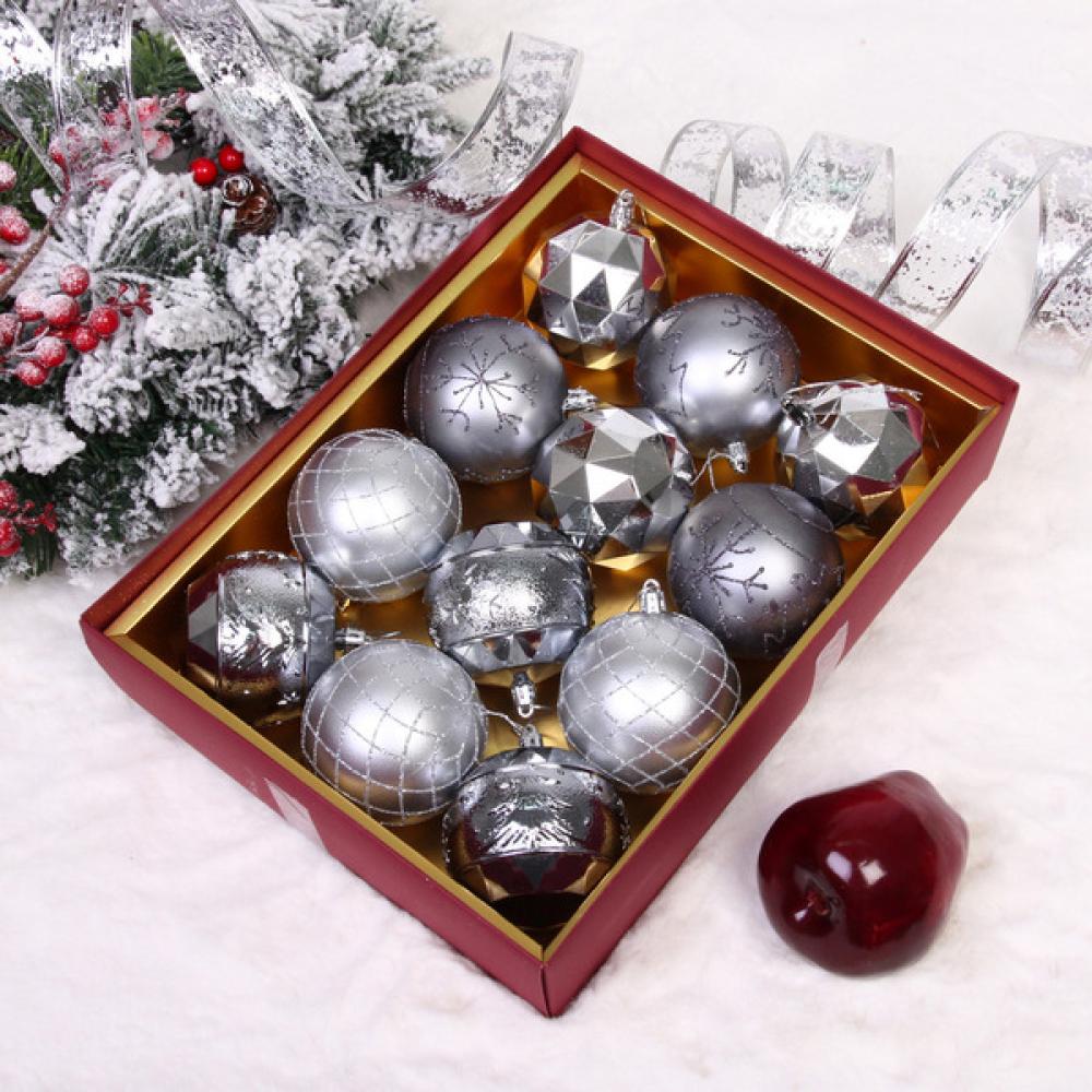 Шар 8 см (набор 12 шт) "Волшебный вальс",графит/серебро, 201-4209