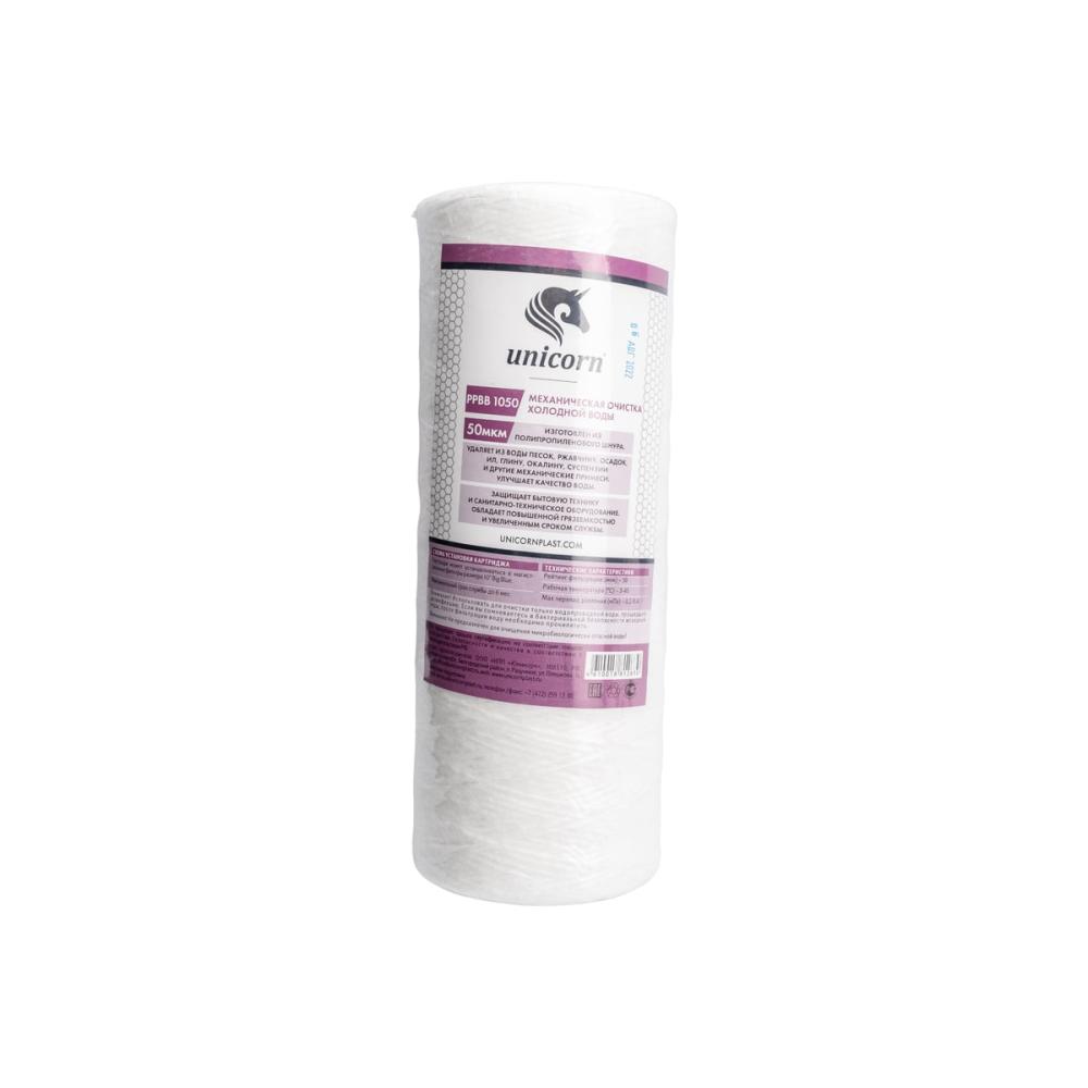 Механический картридж Unicorn из полипропиленового шнура, 10\'\' BB, 50 мкм, PP BB 1050 541190 удаляет из воды песок, ржавчину, осадок, ил, глину, окалину, суспензии и другие механические примеси.
