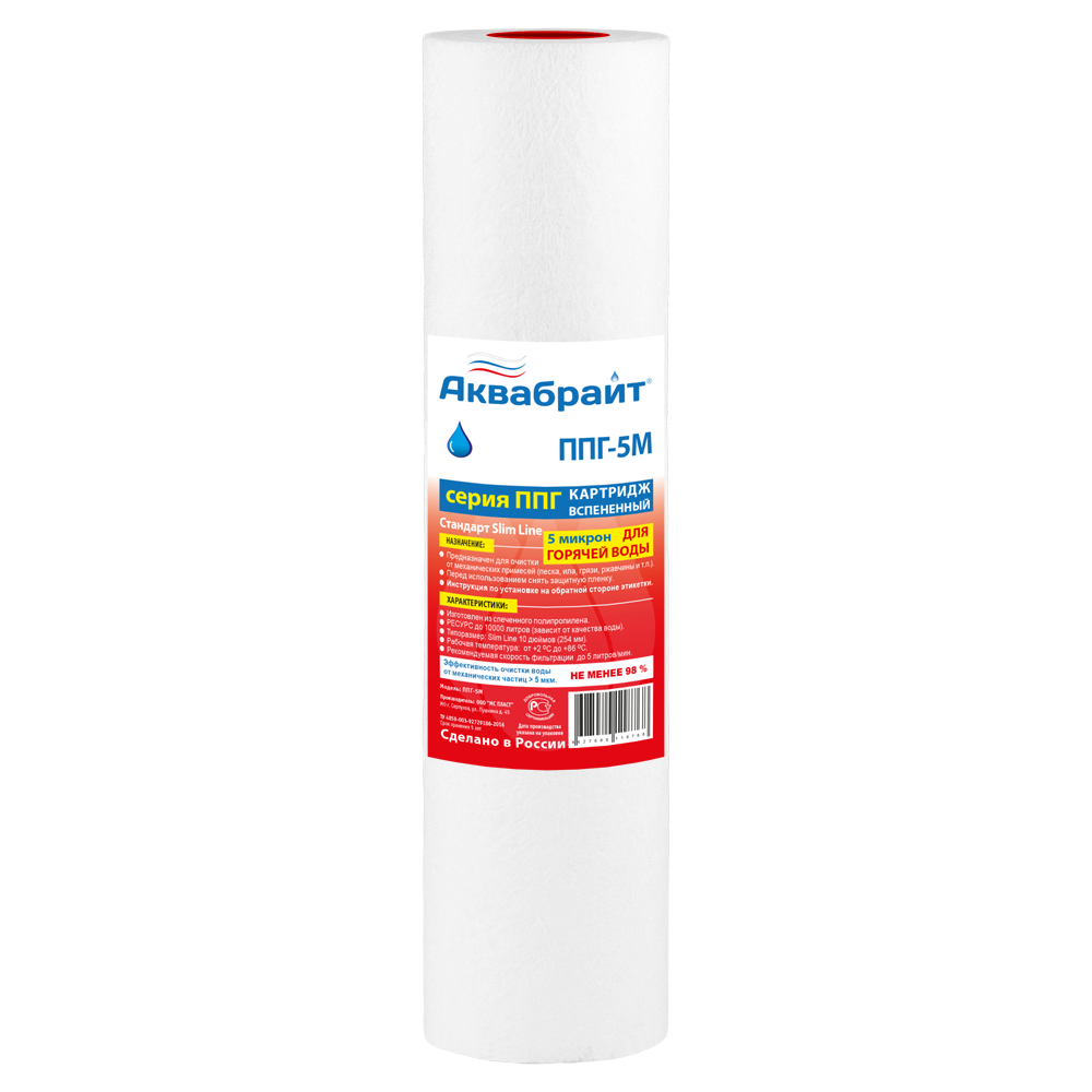 Картридж SL10 механической очистки горячей воды,5 мкм,полипропилен с сердечником(ППГ-5М),АкваБрайт