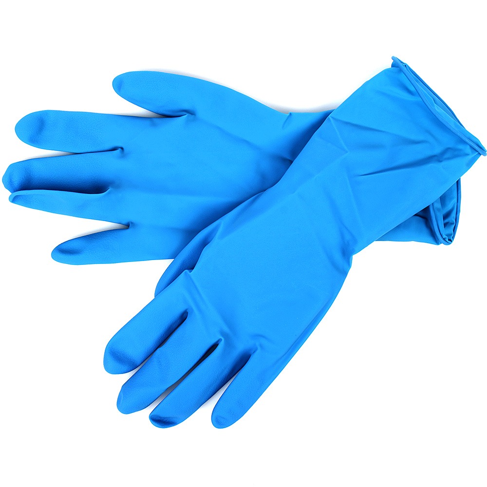 Перчатки хозяйственные изготовлены из прочного латекса.