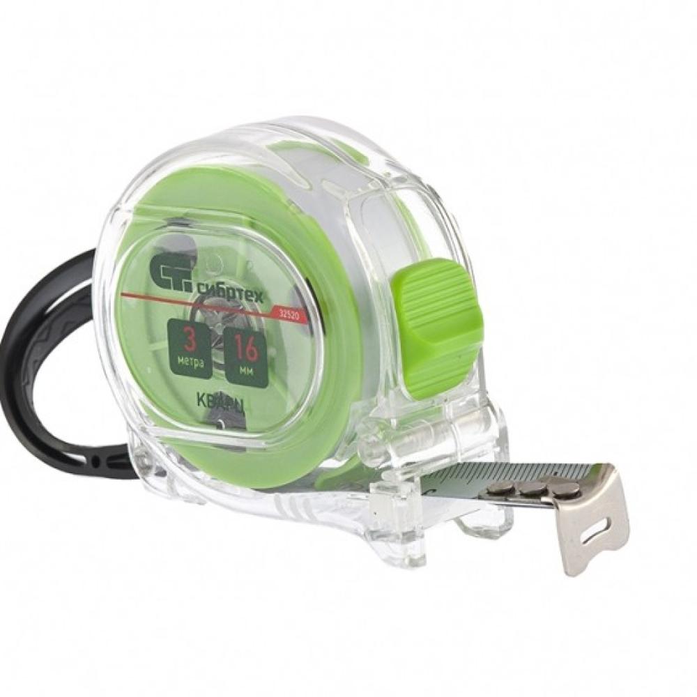 Рулетка 3 м х 16 мм, амортизатор, прозрачный корпус, Кварц, Сибртех
