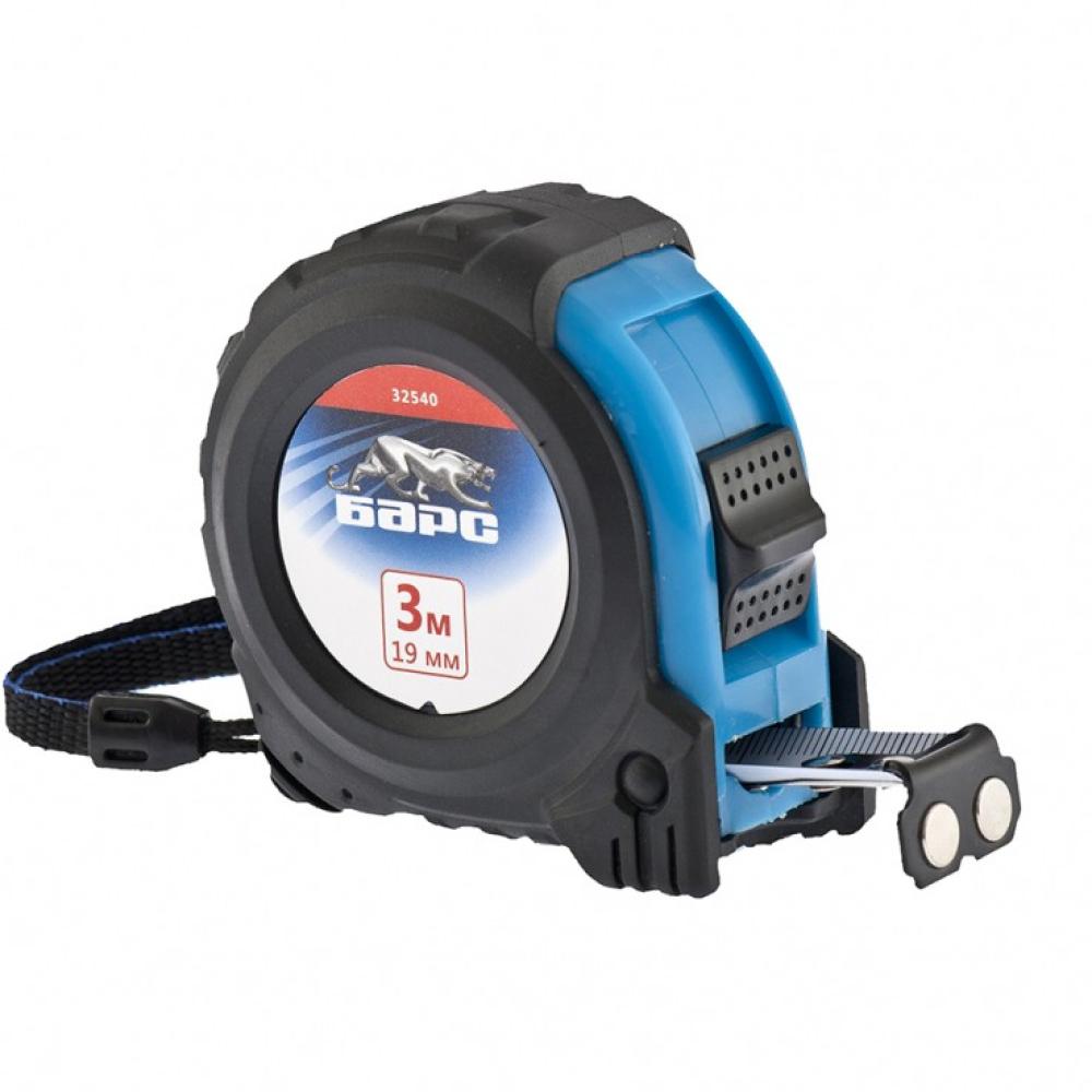 Рулетка Барс Вектор 32540 с утолщенным полотном 3 м х 19 мм и магнитным зацепом, в обрезиненном корпусе, используется при проведении линейных измерений. Незаменима в хозяйстве и на строительной площадке для вычисления размеров заготовок, конструкций и т.д.