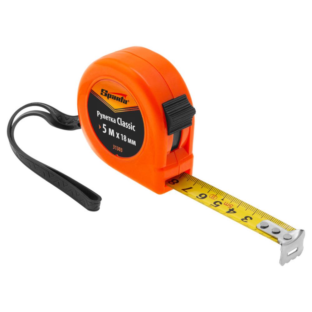 Рулетка Sparta «Classic» 31303 с полотном 5 м х 18 мм, в пластиковом корпусе, станет незаменимым помощником в хозяйстве при измерении длины и ширины деталей, заготовок, материалов, мебели и т.д. Она рассчитана на бытовое использование. За счет специального окошка на зацепе рулетка подходит для применения в качестве циркуля.
