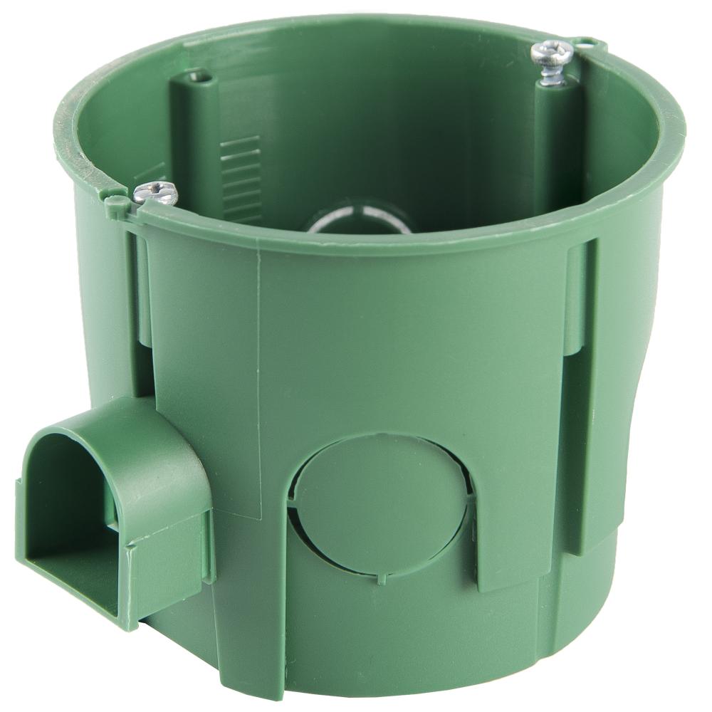 Коробка установочная (подрозетник) предназначена для установки розеток, выключателей, и других электроустановочных изделий в кирпичные и бетонные стены. Подрозетники соединяются между собой, обеспечивая межосевое расстояние 71 мм. и образуют при этом закрытый соединительный канал для проводки. Подрозетник укомплектован двумя саморезами размером -3х20мм. Цвет синий. Материал пластик.