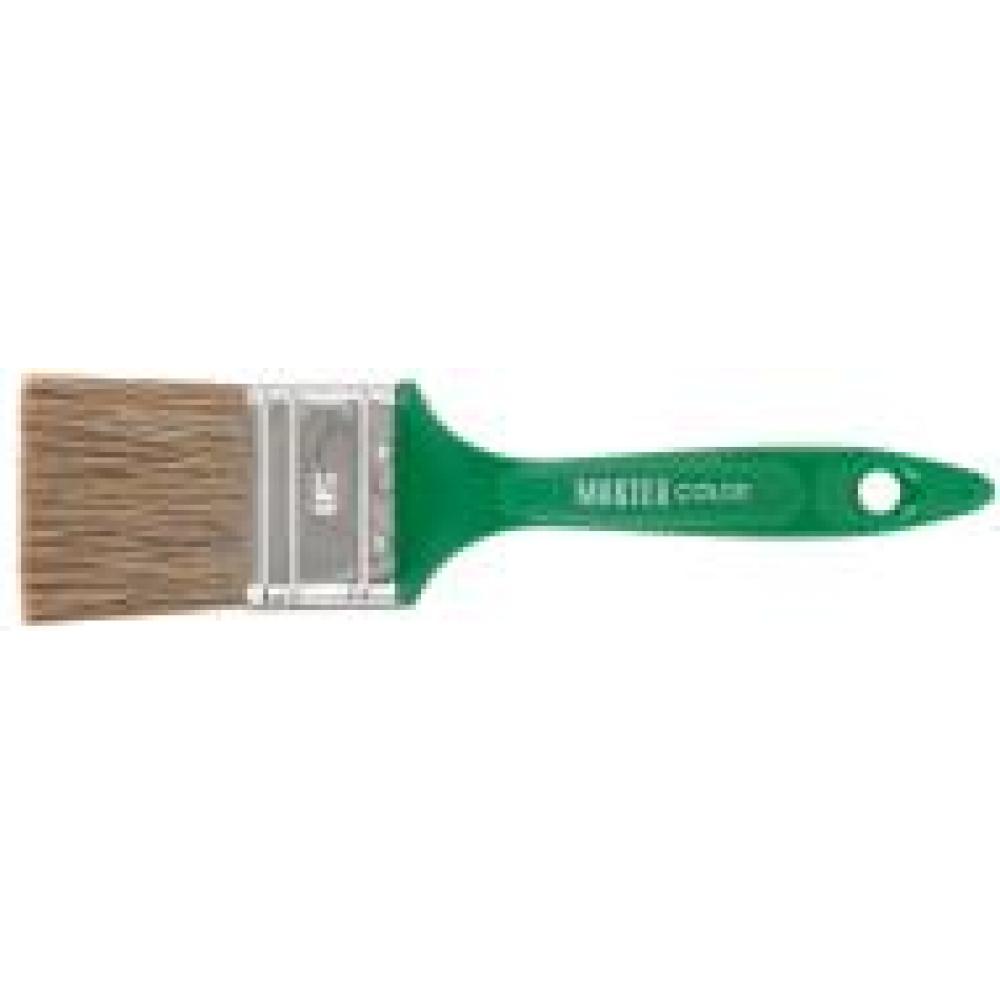 Качественный микс из темной натуральной и синтетической щетины. 70% топс. Подходит для лазурей, пропиток , антисептиков. Нержавеющий обжим. Пластиковая ручка. Дополнительная фиксация обжима на заклепки.
