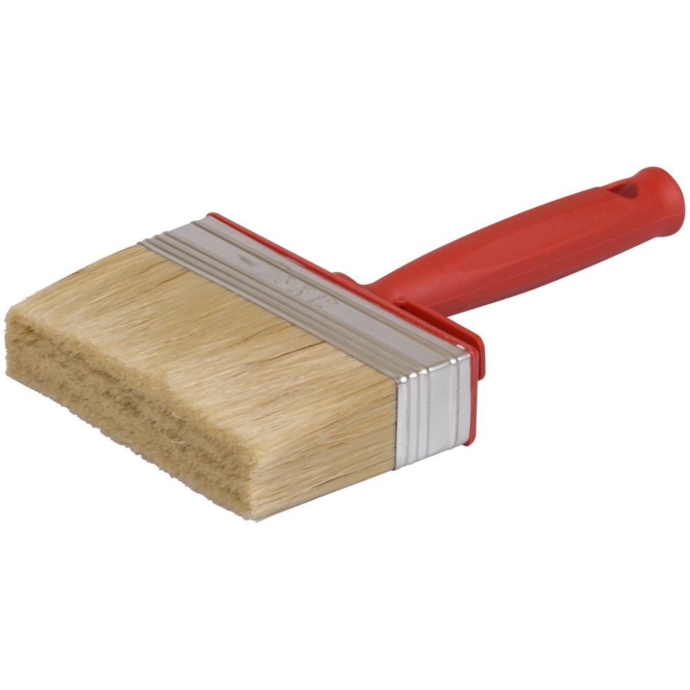 Смешанная щетина (70% синтетическая /30 %) светлая натуральная щетина. Нержавеющий обжим. Красная пластиковая ручка.