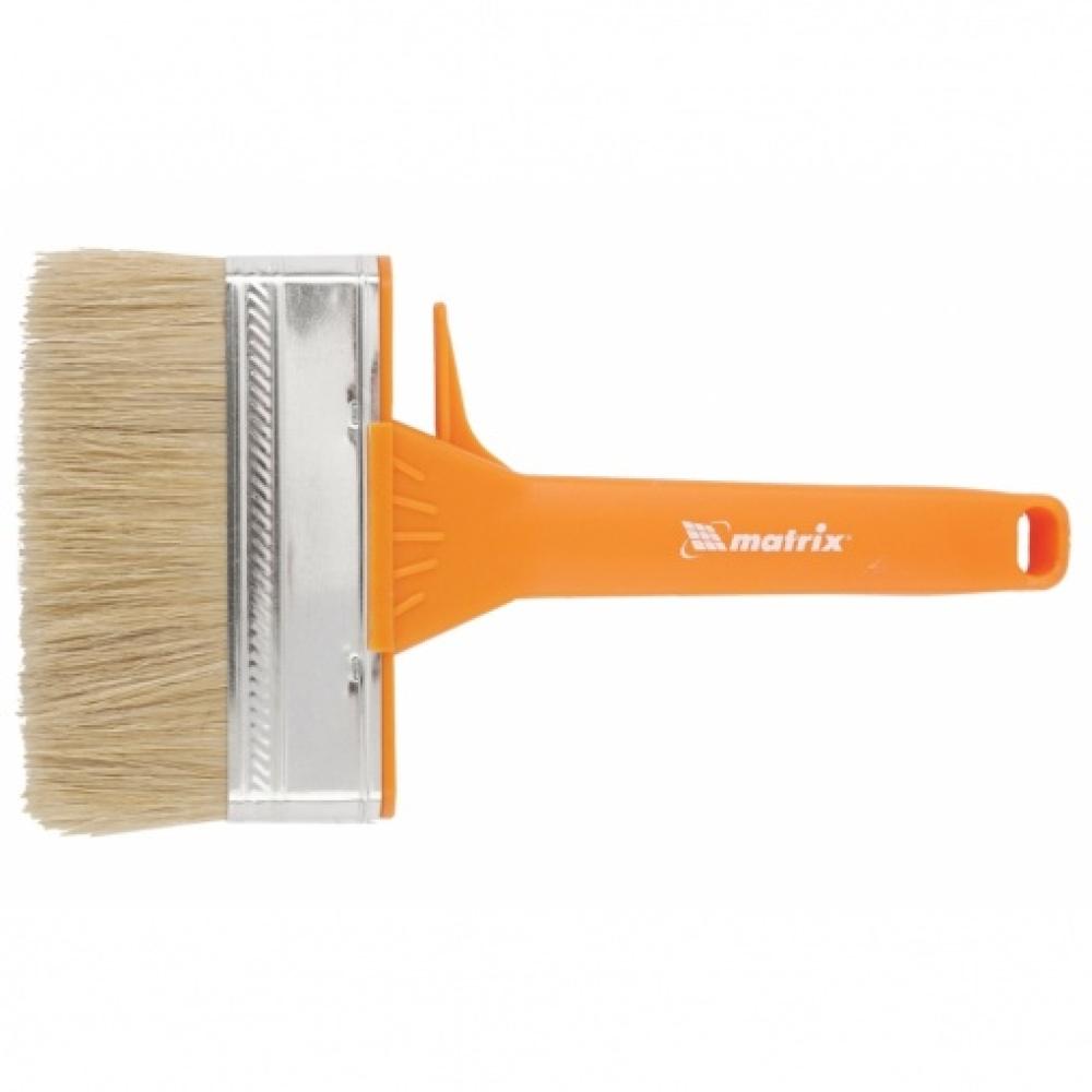 Кисть флейцевая Matrix для фасадных работ 83393 толщиной 12 мм и шириной 120 мм предназначена для окрашивания грубых шероховатых поверхностей и обширных участков. Используется при проведении фасадных работ. Рабочая часть изготовлена из высококачественной натуральной щетины (показатель ТОПС не ниже 70%) с расщепленными кончиками, которая набирает и удерживает большой объем краски, — это обеспечивает высокую производительность кисти. Щетина устойчива к воздействию агрессивных сред, поэтому может использоваться с лакокрасочными материалами на основе растворителей.
