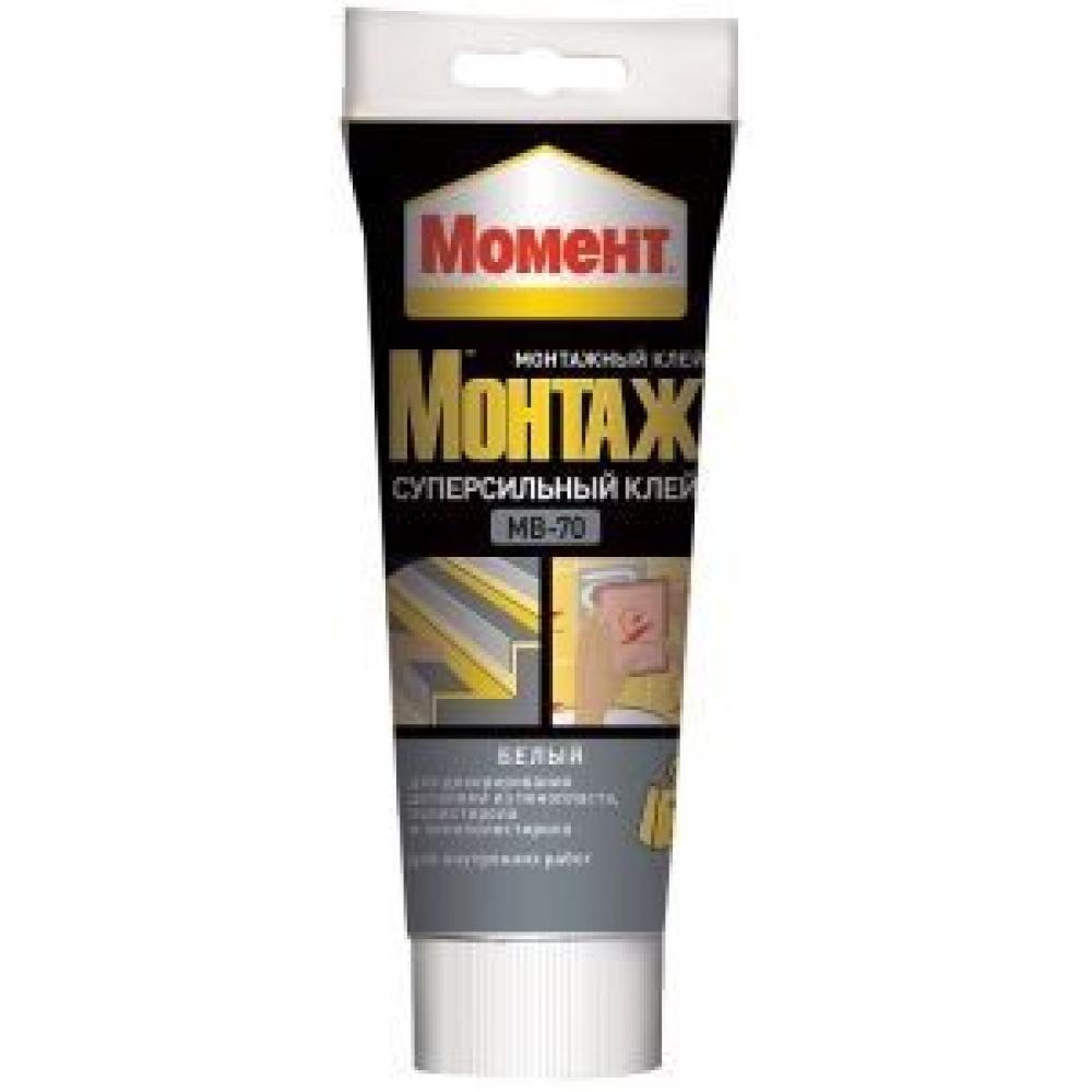 Клей МОНТАЖ суперсильный Момент используется, когда необходимо прочное склеивание. Подходит как для внутренних, так и наружных работ, заполняет трещины до 1 см. Данный клей не содержит растворителей и не имеет запаха. Хранить его необходимо при температуре не ниже 0 ºС. Соединяемые поверхности должны быть обезжиренными, и одна из них должна впитывать клей. Склеивание осуществляется при температуре от 10 ºС, в течение 15 минут. Не подходит для склеивания полиэтилена, полипропилена, тефлона и аналогичных материалов. Склеиваемые материалы: стиропор, дерево, металл, ПВХ, керамика, ДСП, гипсокартон, пробка, пенополистирол, гипс. Срок годности — 18 месяцев. Первоначальная сила схватывания — 70 кг/м2.