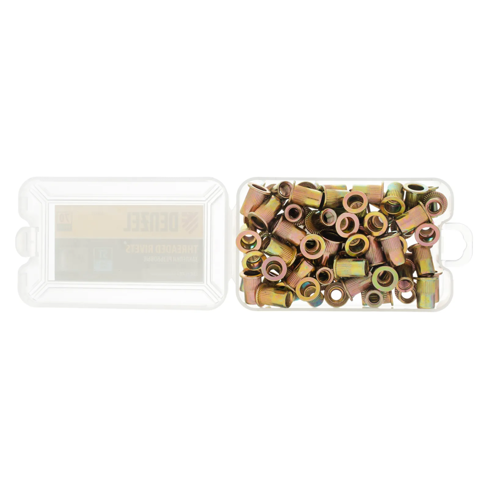 Заклепки резьбовые, стальные, оцинкованные, М6, пластиковый кейс, 70 шт. Denzel