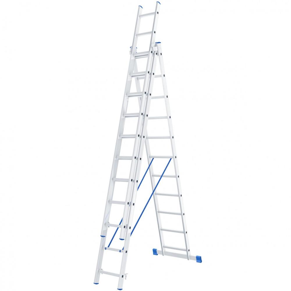 Алюминиевая трехсекционная лестница Сибртех 97821 состоит из 3-х секций по 11 ступеней каждая. Она предназначена для использования преимущественно на открытом воздухе и в помещениях с высокими потолками, подойдет также для работников коммунальных служб и строителей. Лестница поможет провести отделочные, монтажные работы, будет полезна на складе.