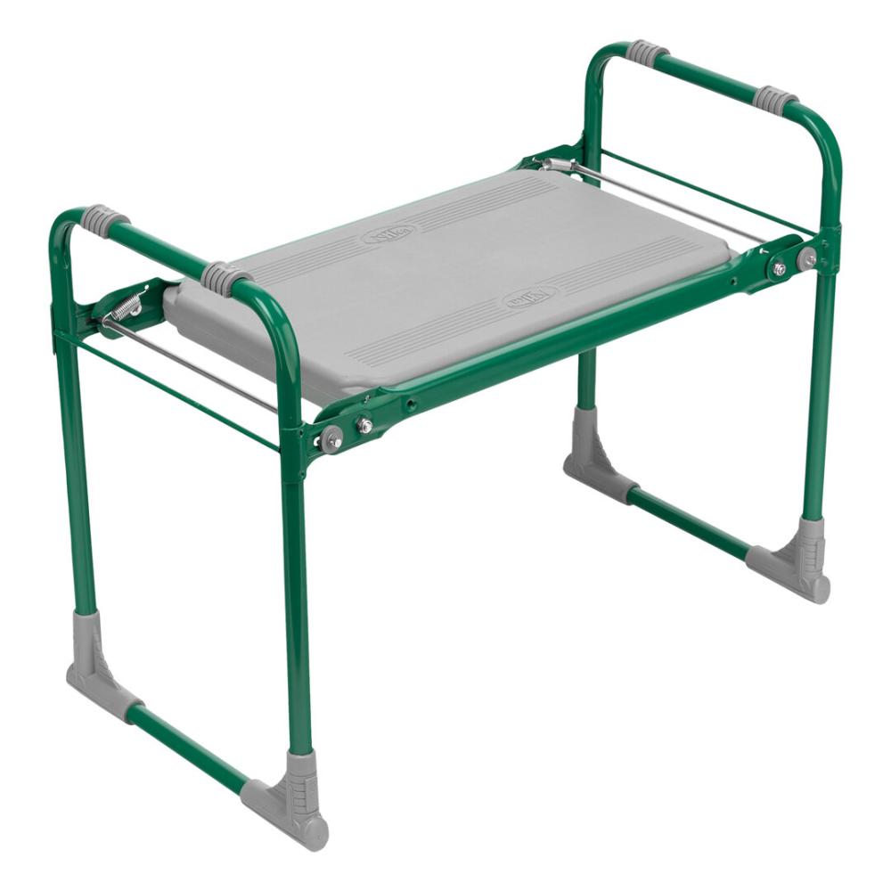 Зеленая садовая скамейка Nika 64556 используется для отдыха и удобства работы в саду. В изначальном положении на ней можно сидеть, а если ее перевернуть, то получается небольшая подставка под колени.