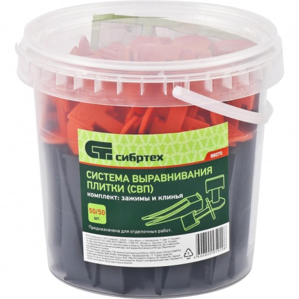 Система выравнивания плитки (СВП), комплект: зажимы, клинья (50/50 шт), упаковка ведро Сибртех