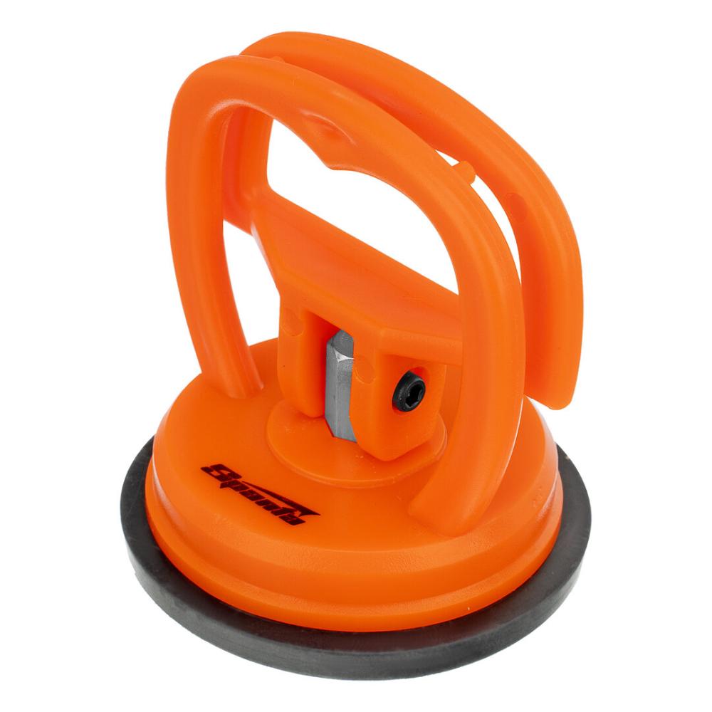 Одинарный мини-стеклодомкрат Sparta 875054 служит для захвата, удержания и перемещения стекол, зеркал, кафельной плитки и других плоских гладких предметов весом до 10 кг. Имеет вакуумную присоску, которая после складывания рукоятки бережно прижимается к чистой сухой поверхности и прочно фиксируется на ней. Инструмент пригодится во время проведения ремонтных и отделочных работ.