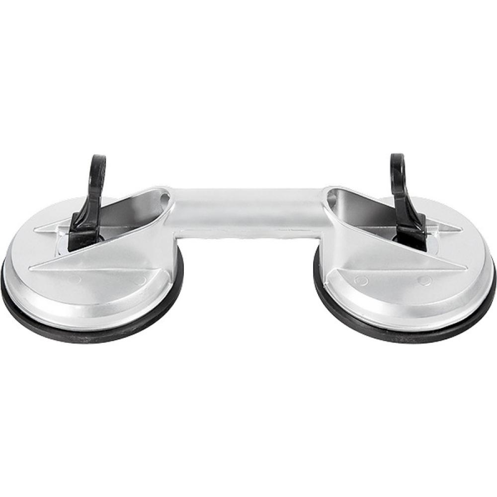 Алюминиевый двойной стеклодомкрат Matrix 875205 используется для подъема, удержания и перемещения гладких пластин и листовых материалов — стекол, зеркал, кафельной плитки, металла, пластика. Имеет две вакуумные присоски, которые бережно и надежно фиксируются на поверхности при помощи зажимов. Такая конструкция позволяет поднимать и долгое время удерживать стеклодомкратом материалы весом до 80 кг. Изделие пригодится мастерам по ремонту, а также будет полезно в быту.