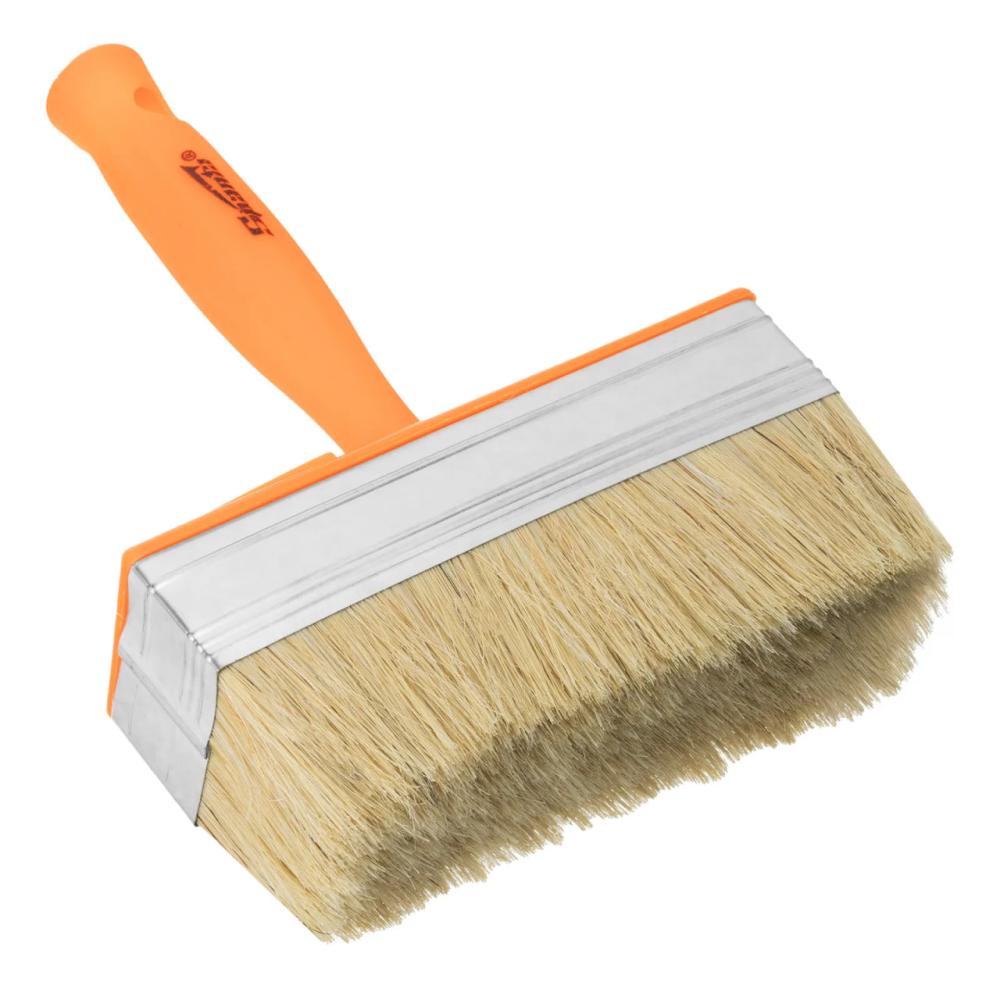 Кисть-ракля Sparta 841070 толщиной 50 мм и шириной 150 мм, с натуральной щетиной, пластмассовыми корпусом и ручкой, используется для малярных работ на участках большой площади, поэтому удобна для обработки стен, потолков и фасадов. Натуральная щетина устойчива к химическому воздействию, поэтому не деформируется и сохраняет упругость при работе с ЛКМ на водной основе, грунтовками, масляными красками и клеящими составами.