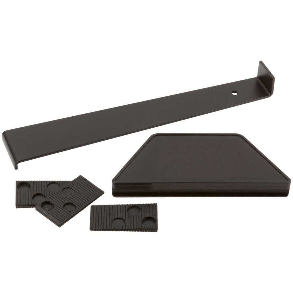 В наборе: пластиковый брусок, монтажная скоба, пластиковые клинья (20 шт.). Регулировка расстояния между ламинатными панелями и стеной с помощью пластиковых клиньев, возможность работы в ограниченном пространстве. Материал: инструментальная сталь, пластик. Упаковка: картонная коробка.