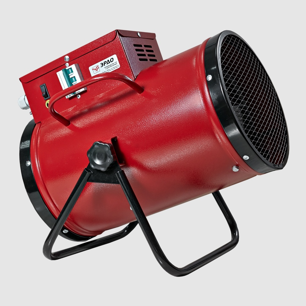 Калорифер представляет собой цилиндрический корпус, внутри которого установлены трубчатые электронагреватели (ТЭН) и электродвигатель с вентилятором. Для более эффективной и удобной работы электрокалорифер снабжен клавишей включения обдува, имеет плавную регулировку угла воздушного потока и оснащен автоматическим выключателем для защиты от короткого замыкания.