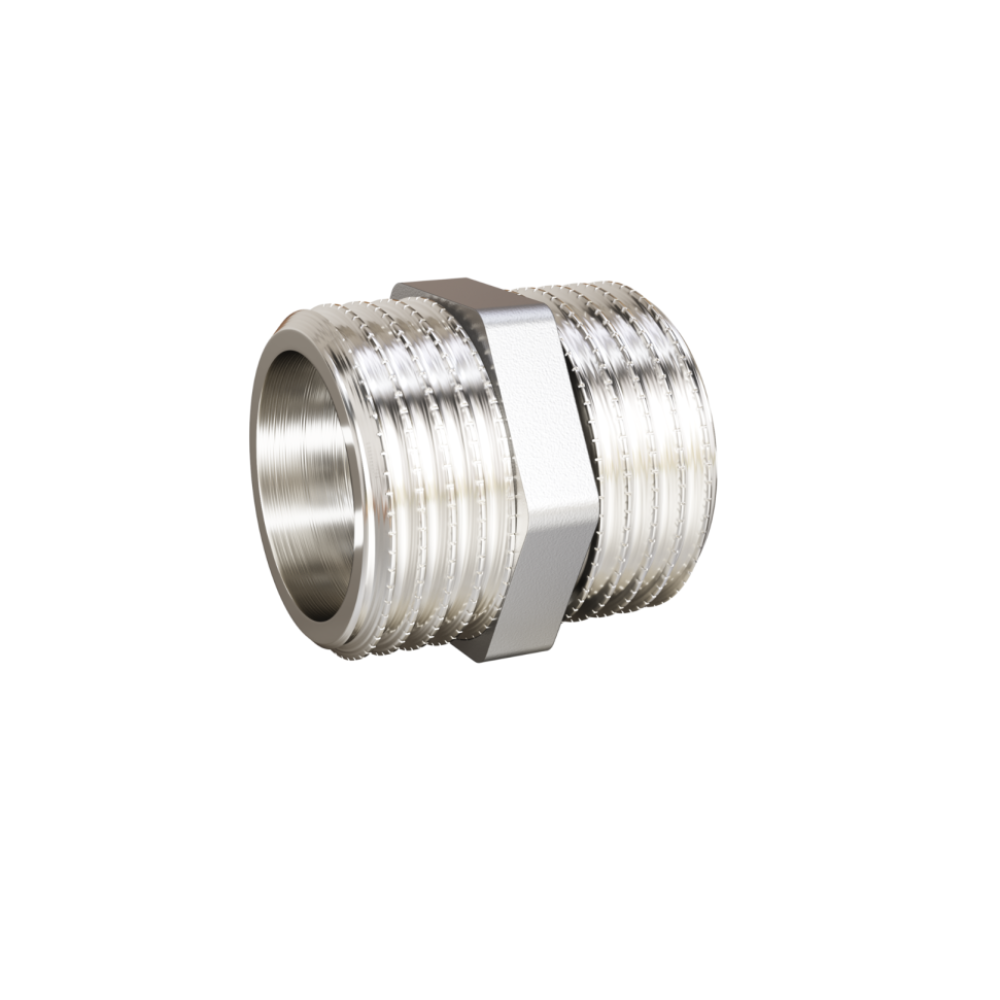емпература рабочей среды, °С-60 ..150 Диаметр резьбы, дюйм 1" Номинальный диаметр, DN 25 Номинальное давление, МПа 4,0 Материал корпуса- Латунь ЛС59-1 никелированная Фитинг, состоящий из короткого куска трубы, снабженного наружной резьбой на каждом конце, для соединения двух других фитингов.