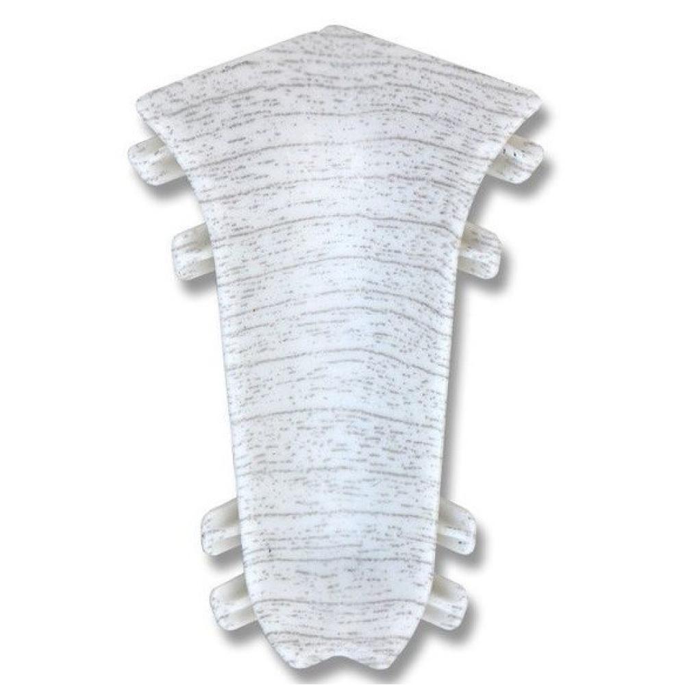 Угол внутренний - декоративный доборный элемент из поливинилхлорида (ПВХ). Применяется при стыковке напольного плинтуса на выступах в помещении. Делает угловые соединения эстетичными и аккуратными, маскирует неровные срезы. Высота детали составляет 5,5 см см.